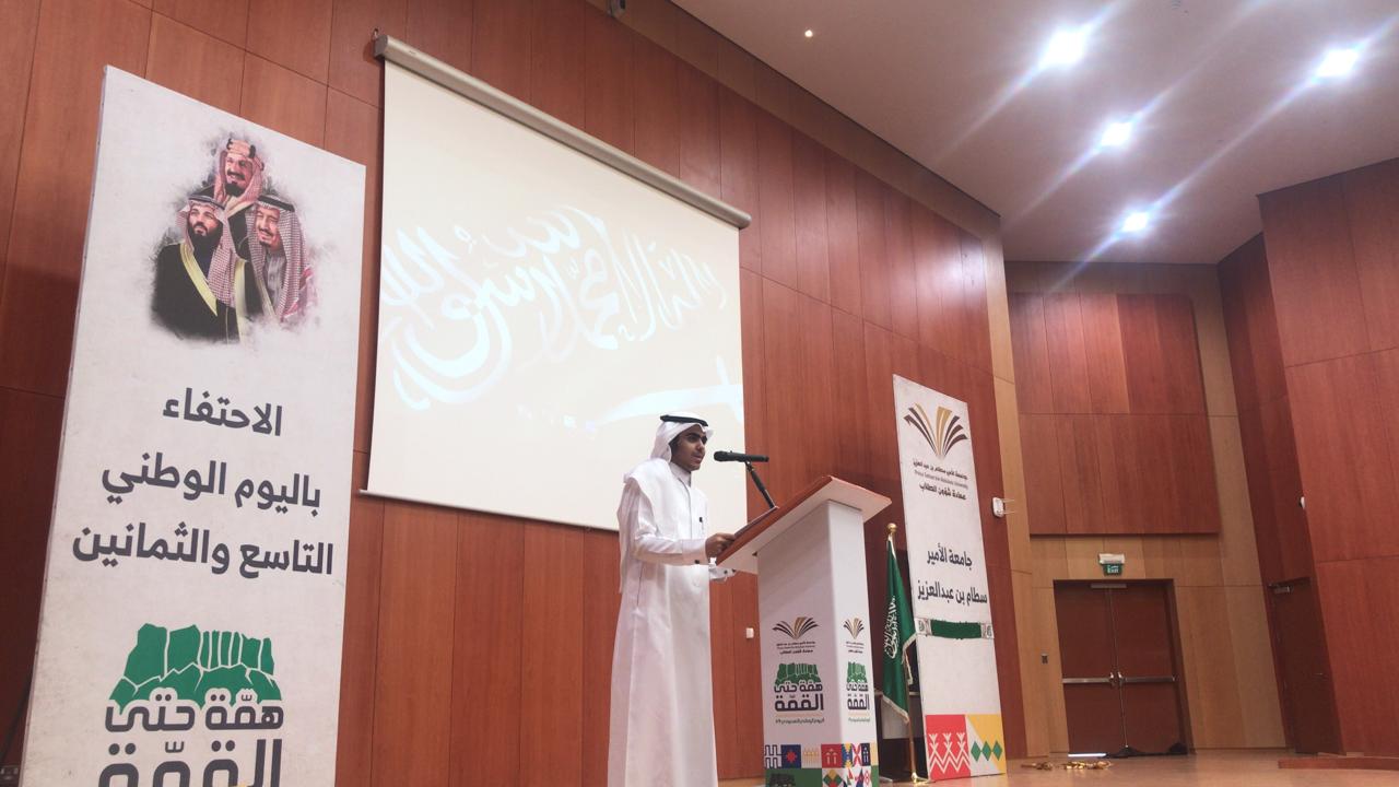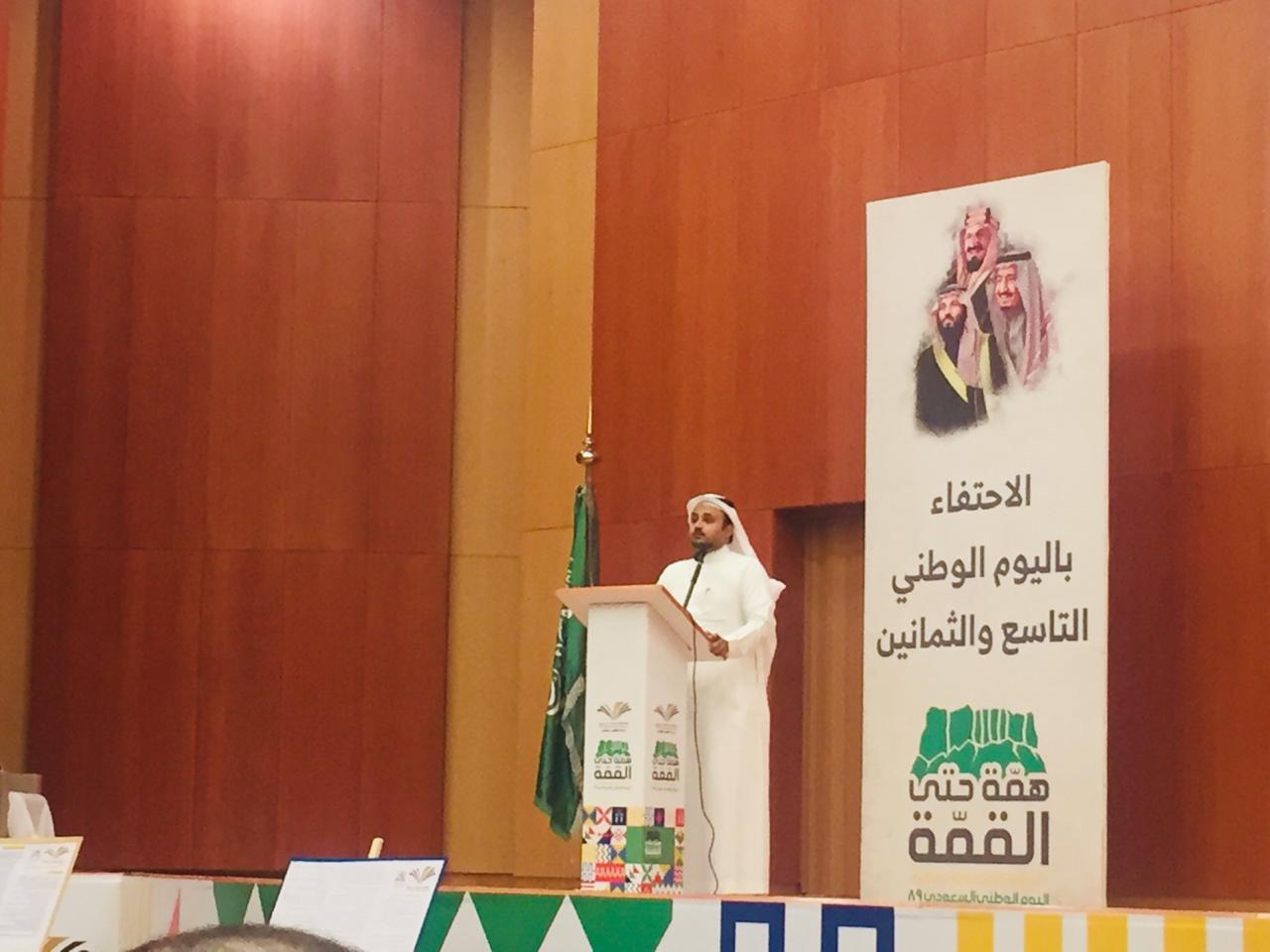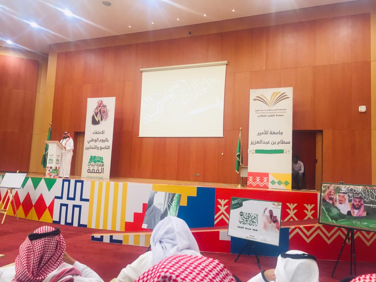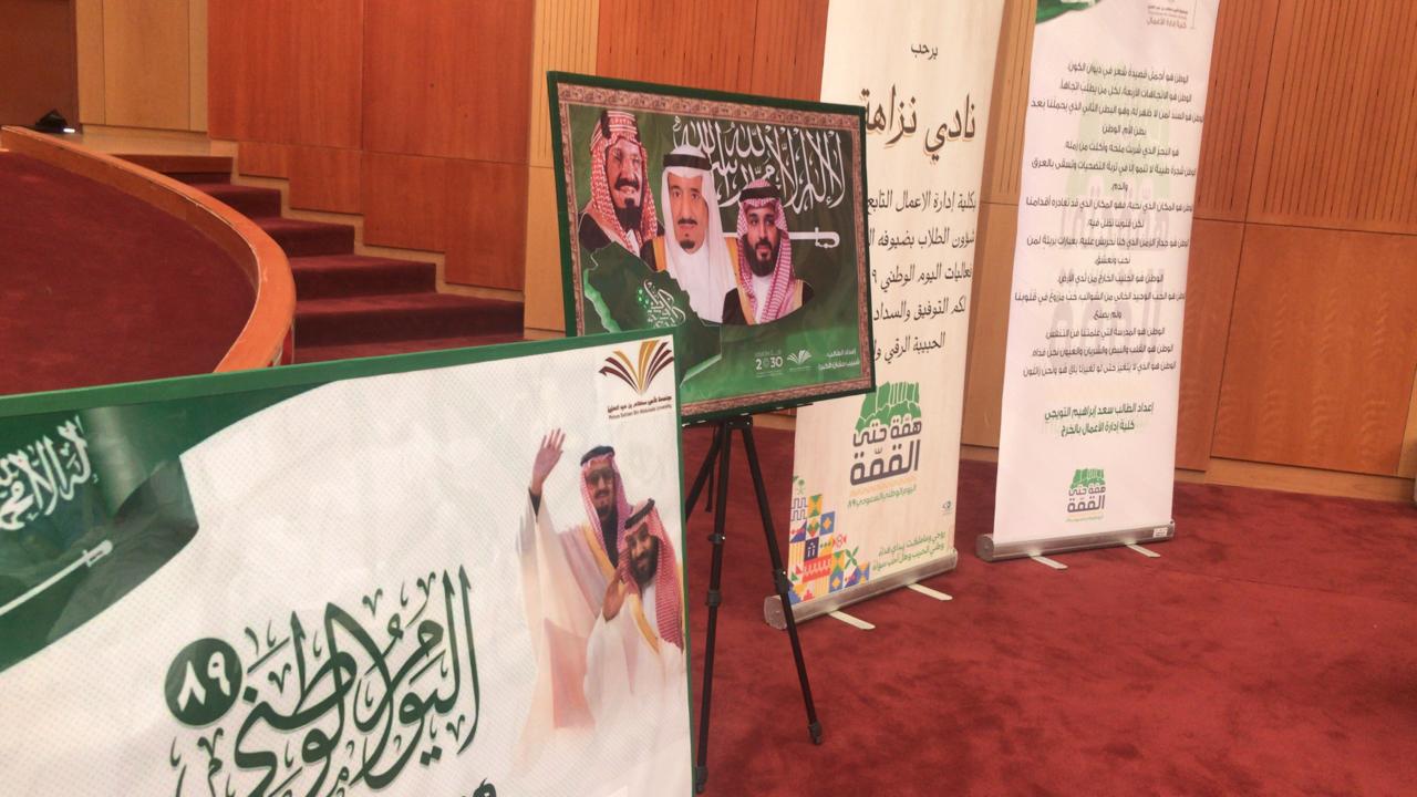 تحت رعاية سعادة عميد كلية إدارة الأعمال الدكتور/ أحمد بن سهيل عجينة، نظمت لجنة الانشطة الطلابية بكلية إدارة الأعمال بالخرج إحتفالاً باليوم الوطني للمملكة التاسع والثمانون، وذلك بحضور ومشاركة وكلاء الكلية ومشرفي الأقسام الأكاديمية وأعضاء هيئة التدريس والطلاب، حيث تضمن الحفل عدداً من الفقرات الرائعة والمميزة. بدأ الحفل بتلاوة آيات من القراءان الكريم، ثم عزف النشيد الوطني للمملكة، وبعدها ألقى سعادة عميد الكلية الدكتور/ أحمد بن سهيل عجينة كلمته التي هنأ فيها قيادة المملكة والشعب السعودي باليوم الوطني، كما قدم التبريكات لمقام خادم الحرمين الشريفين حفظه الله وسمو و لى عهده الأمين ومعالى مدير جامعة الأمير سطام بن عبدالعزيز، كما استعرض سعادته تاريخ المملكة وإنجازاتها على مستوى كافة القطاعات، وأكد الدكتور/ عجينه في كلمته على أهمية تفعيل دورنا وتوحيد صفوفنا وتوجيه جهودنا في بناء هذا الوطن المعطاء الذي جعله الله دوحة غناء تنعم بالرخاء وترفل بالرفاهية والاستقرار، ثم توالت فقرات الحفل التي تنوعت ما بين إلقاء الشعر والأفلام الوثائقية والأناشيد الوطنية التي تؤرخ وتوثق لتأسيس المملكة على يد الوالد المؤسس الملك عبدالعزيز بن عبدالرحمن آل سعود طيب الله ثراه، ثم تلى ذلك قيام الطلاب بتقديم الشيلة السعودية والتي لاقت استحساناً وتفاعلاً وقبولاً من الحاضرين.وفي نهاية الحفل تمنى الجميع للملك سلمان بن عبدالعزيز دوام الصحة والعافية وطول العمر وللشعب السعودى كل رفاهية وتقدم سائلين المولى عز وجل أن يحفظ الله على المملكة العربية السعودية أمنها وإيمانها وسلامتها وقيادتها.