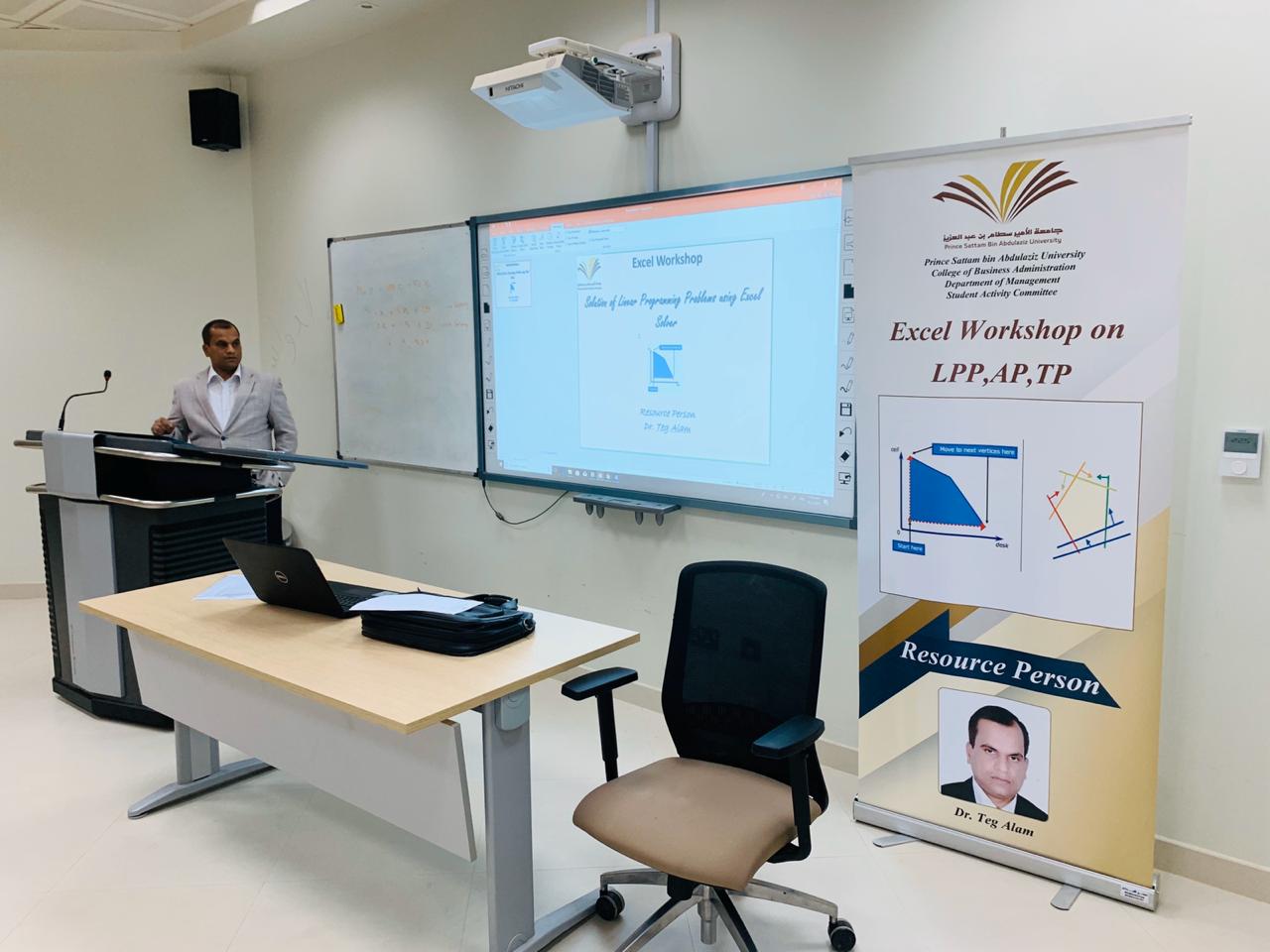 تواصلاً لأنشطة لجنة الأنشطة الطلابية بكلية إدارة الاعمال، نظمت اللجنة بالتعاون مع قسم الإدارة بالكلية بتاريخ الاربعاء 23/10/2019م دورة تدريبية فى البرمجية الخطية، حيث ادار الدورة الدكتور/ تيج علام تيج. هدفت الدورة الى تعريف الطلاب بكيفية استخدام برنامج إكسل في التعامل مع مشكلات البرمجية الخطية، حيث قام الدكتور تيج بعرض مجموعة من الأمثلة الخاصة بعملية حل مشكلات البرمجية الخطية باستخدام اكسل مع عرض اهم الخطوات اللازمة للحل. الجدير بالذكر ان هذه الورشة تعد مشاركة من قسم الإدارة في الأنشطة والفعاليات العملية والثقافية التي تنظم بإشراف لجنة الأنشطة الطلابية بالكلية.