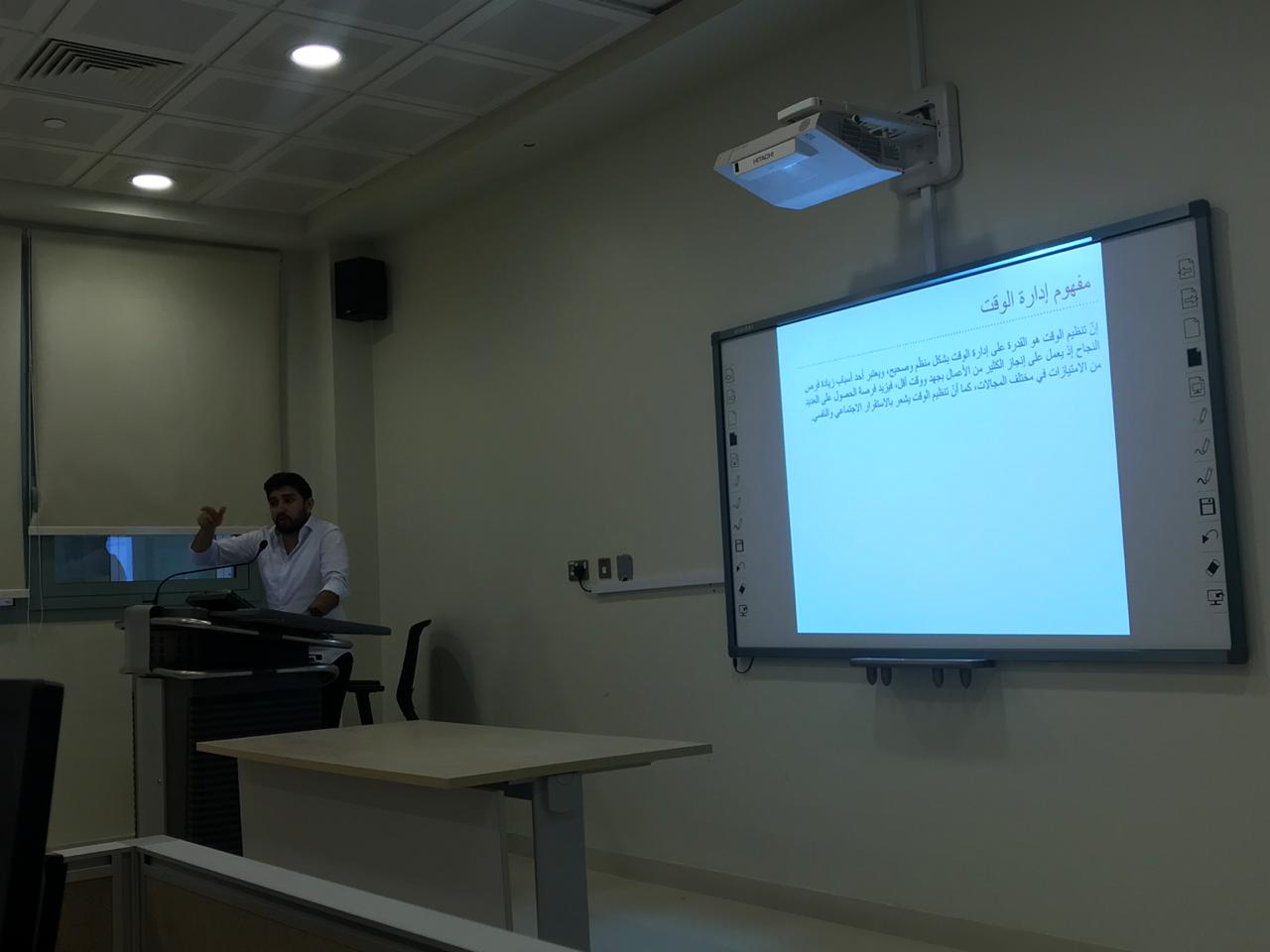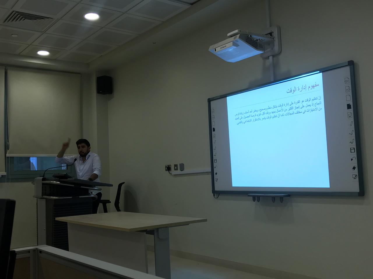 نظمت كلية إدارة الأعمال بالخرج بتاريخ الأربعاء 11/7/1440هـ الموافق 18/3/2019م محاضرة بعنوان "إدارة الوقت"، قدم لها سعادة الدكتور/ أنس عبدالستار سلامة الأستاذ المساعد بقسم نظم المعلومات الإدارية. تناول فيها عنصر الوقت وأهميته باعتباره أهم مورد يمتلكه الإنسان من بين مختلف الموارد المتاحة وخصائص الوقت التي تميزه عن غيره من العناصر الأخرى، كما تناول أيضاً العلاقة بين إدارة الأولويات وعلاقتها بالوقت والأسباب التي قد تؤدي إلى إهدار الوقت. كما أشار سعادته أيضاً إلى أهمية تنظيم الوقت كمدخل لتحقيق التفوق الدراسي موجهاً إلى أهمية الإبتعاد عن كل ما قد يكون سبباً في إهدار هذا المورد الاقتصادي الهام مؤكداً أن تنظيم الوقت من بداية الفصل الدراسي قد يكون سبباً لتجنب أية ضغوط قد تواجه الطالب أثناء فترة الاختبارات.