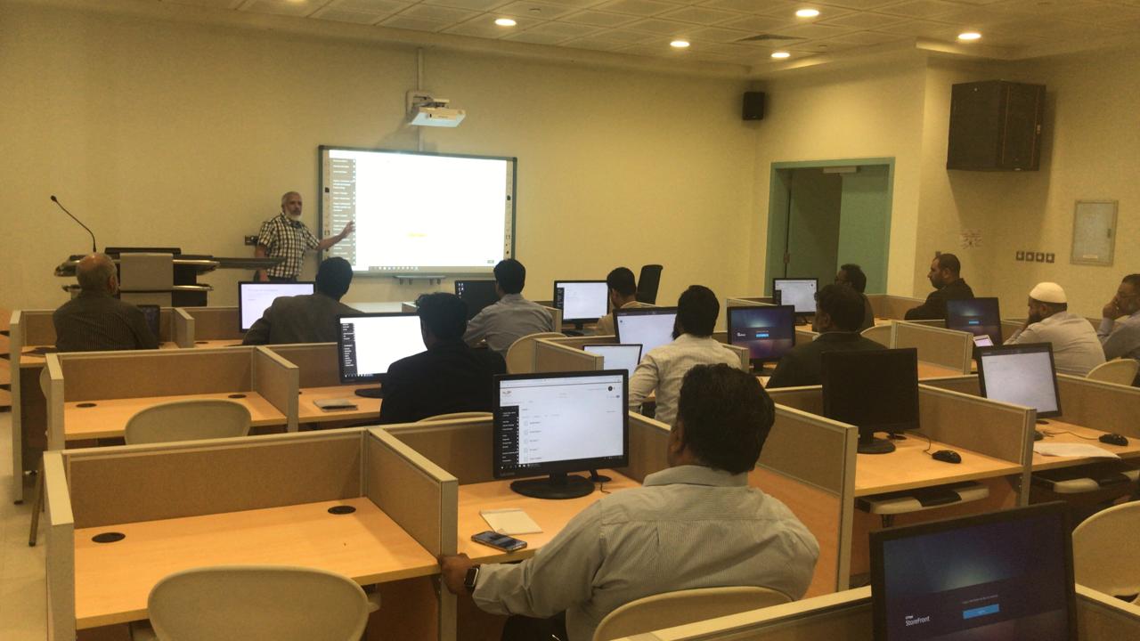 تعزيزاً لعملية استخدام وتوظيف التقنيات الحديثة في العملية التعليمية، نظمت وحدة التعليم الإلكتروني بالكلية بالتعاون مع وكالة الكلية للشئون الأكاديمية والتعليمية اليوم الثلاثاء الموافق 10/3/2020 م ورشة عمل حول بناء المحتوى التعليمي لإنشاء دروس الكترونية وفق معايير الجودة على نظام البلاك بورد. وقد قدم الورشة سعادة الدكتور/ فتحي بشير الأستاذ المشارك ومشرف قسم نظم المعلومات الإدارية بالكلية، وقد تناول سعادته العديد من المفاهيم والمهارات اللازمة لاستخدام وتوظيف البلاك بورد في العملية التعليمية، وكيفية التطبيق المباشر للمهارات والمعارف التدريسية وعمل الإختبارات والواجبات إلكترونياً، وكذلك تخلل الورشة عرض لأهم المشاكل التي تواجه أعضاء هيئة التدريس عند استخدام نظام البلاك بورد وطرق حل هذه المشاكل. وفي نهاية الورشة أجاب الدكتور/ بشير على أسئلة الحضور واستفساراتهم.يذكر أن هذه الورشة كانت موجهة لجميع أعضاء هيئة التدريس بالكلية وسيتم إقامة العديد من الدورات التدرييبية وورش العمل خلال الفترة القادمة.