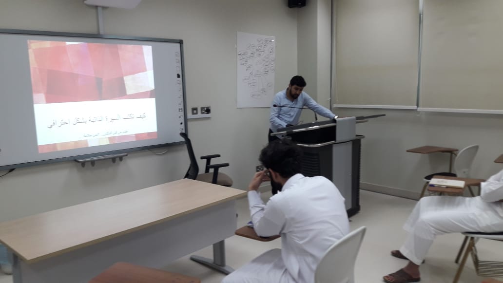 نظمت كلية إدارة الأعمال بالخرج بتاريخ الثلاثاء 19/7/1440هـ الموافق 26/3/2019م ورشة عمل بعنوان بعنوان "فن كتابة السيرة الذاتية"، قدم لها سعادة الدكتور/ أنس عبد الستار محمد سلامة الأستاذ المساعد بقسم نظم المعلومات الإدارية. تناول فيها مفهوم السيرة الذاتية، وآلية تسويقها، وعناصرها الرئيسية، والشروط التي يتعين على من يكتب سيرته الذاتية أن يأخذها بعين الاعتبار، ثم أهمية السيرة الذاتية، وأخيراً الموصفات الفنية للسيرة الذاتية الاحترافية.