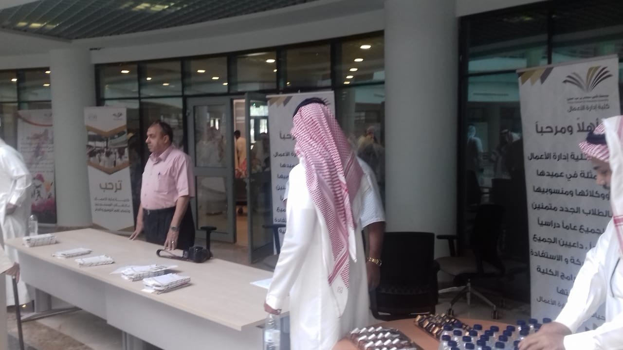 تحت رعاية سعادة عميد كلية إدارة الأعمال بالخرج، إستقبلت الكلية طلابها فى مستهل العام الدراسي الجديد 1440/1441هـ، وقد كان في إستقبال الطلاب عميد الكلية الدكتور/ أحمد بن سهيل عجينة، وكيل الكلية للشؤون التعليمية والأكاديمية الدكتور/ عواد العنزي، ووكيل الكلية للتطوير والجودة الدكتور/ فيصل الخليفي، ولجنة الأنشطة الطلابية برئاسة الدكتور/ طارق توفيق الخطيب، وذلك بحضور عدد من رؤساء الأقسام و أعضاء هيئة التدريس ومدير الإدارة الأستاذ / بندر الشاهين وعدد من المحاضرين والمعيدين. تضمن الإستقبال شرحاً مبسطاً للطلاب خاصة الجدد حول الكلية وخططها الدراسية، وبرامجها ألأكاديمية، وأنشطتها الطلابية ، وأقسامها المختلفة، والجداول الدراسية، وأماكن القاعات، وعمليات التسجيل والحذف والإضافة، وغيرها من العمليات.وإستقبل الدكتور/ عجينه سعادة وكيل الجامعة للشؤون التعليمية والأكاديمة سعادة الدكتور/ مشاري بن عياد العصيمي الذي تفقد وحدات خدمة الطلاب بالكلية خاصة وحدة شؤون الطلاب وكذلك الخدمات التي تقدم للطلاب وآلية إرشادهم وتوجيههم، وقد أكد سعادته على أهمية إنضباط الطلاب وضرورة إنتظامهم في الحضوروكذلك أهمية حضور وإنتظام أعضاء هيئة التدريس منذ اليوم الأول للدراسة دعماً للطلاب في تحقيق التميز والتفوق الدراسي.