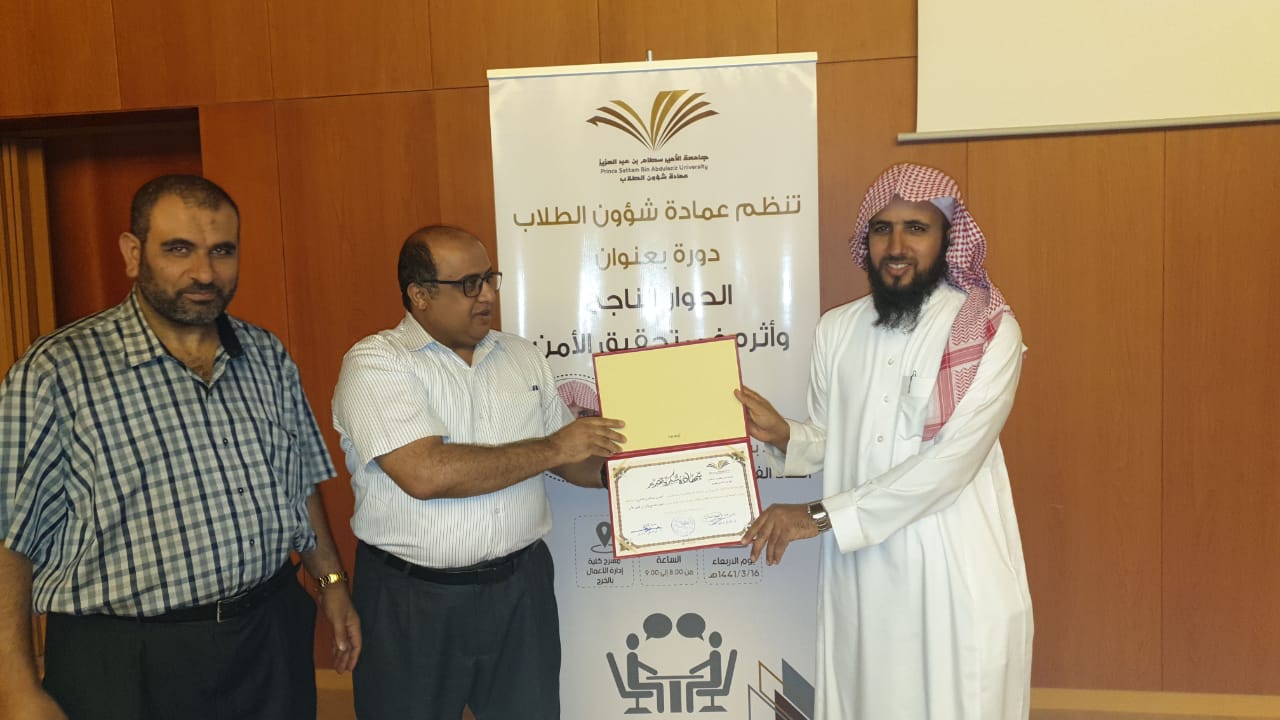 نظمت عمادة شؤون الطلاب بجامعة الأمير سطام بن عبدالعزيز بالتعاون مع كلية إدارة الأعمال بالخرج دورة تدريبية بعنوان "الحوار الناجح وأثره في تحقيق الأمن"، وذلك يوم الأربعاء 16/3/1441هـ ، قدمها سعادة الدكتور/ أحمد بن عبدالعزيز الشثري أستاذ الفقه المشارك بالجامعة. هدفت الدورة إلى تعريف الطلاب بآداب الحوار الناجح وضوابطه ومستوياته وفروعه الرئيسة. قدمت الدورة عدداً وافياً من المقترحات الهامة اللازمة لتعزيز مبدأ الحوار في المجتمع الجامعي، كما تناول الدكتور/ الشثري ثمرات الحوار الإيجابي الناجح والآثار المترتبة عليه وأنعكاس الآثار الإيجابية للحوار الناجح على جوانب عدة في المجتمع لاسيما على جوانب الأمن الفكري والاجتماعي وغيره، وفي نهاية الدورة قدم الدكتور/ الشثري عداً من الأنشطة الداعمة للحوار الإيجابي وسبل تفعيلة ثم أجاب في النهاية على أسئلة الطلاب واستفساراتهم.وفي نهاية الدورة، قدم الدكتور/ طارق توفيق الخطيب شكر وتقدير كلية إدارة الأعمال لسعادة الدكتور/ أحمد الشثري على حضوره وتفاعله كما قدم شكره أيضاً لعمادة شؤون الطلاب على دعمها اللامحدود للكلية وقدم شكره أيضاً لسعادة الأستاذ/ سلطان العتيبي على حضوره وحرصه على المشاركة متمنياً للجميع دوام التوفيق والسداد وفي نهاية الدورة تم تكريم ضيوف الكلية وأخذت بعض الصور التذكارية.