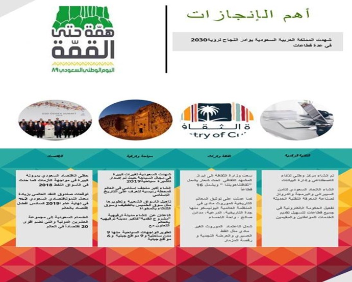 تحت رعاية وكيلة كلية إدارة الأعمال بالخرج الدكتورة / وردة بنت عبد الرحمن الدبل، نظمت وحدة العمل الطلابي بالكلية بتاريخ الأحد 30/1/1441هـ احتفالاً باليوم الوطني89، وذلك تحت شعار همة حتى القمة. تجسد فى هذا الإحتفال حق الوطن الغالي بأن نقف ونتأمل ونجدد الشعور العمیق بالانتماء والإخلاص لھذا الوطن في نفوس جمیع منسوبات الكلية.تضمنت فقرات هذا الإحتفال تقديم فقرة ثقافية عن أهم إنجازات المملكة خلال الخمس سنوات الماضية، وذلك في مجالات التقنية، والثقافة ، والتراث والسياحة، والاقتصاد، وكذلك تضمن فقرة عن الموروثات.وكذلك شمل الحفل مشاركة أندية الكلية (نادي توازن المحاسبي ونادي القانون) بالعديد من المسابقات الثقافية والعروض المميزة، والتى هدفت إلى تعزيز قيم الانتماء والولاء للدين ثم المليك والوطن وإعلاء وترسيخ مشاعر الولاء لولاة الأمر وتأصيل الممارسات و المبادرات الإيجابية تجاه الوطن وإبراز دور المؤسس الملك عبد العزيز – رحمه الله – و أبنائه في لم الشمل و توحيد الوطن.وايضا شارك فى هذا الإحتفال المجلس الاستشاري الطلابى بلوحة جداریة هدفت لإتاحة الفرصة للطالبات للتعبیر عن مشاعر الولاء و الإنتماء و الحب للوطن، كما وضعت توزیعات بذور نباتیة بھدف تعزیز وتشجیع المساھمة في تنمیة وخلق بیئة أفضل للوطن.فى الختام تمنى الجميع بأن تكون مملكتنا على الدوام قلباً نابضاً للعالم العربى والإسلامى.