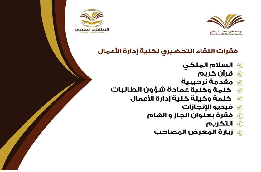 نظمت لجنة الملتقى العلمي الثالث اللقاء التحضيري للملتقى في كلية إدارة الأعمال بالخرج بتاريخ الاثنين الموافق 20/ 6/ 1440هـ ، وذلك تحت رعاية وكيلة الكلية الدكتورة/ وردة الدبل وبحضور أعضاء اللجنة الإشرافية العليا على الملتقى سعادة الدكتورة/ دلال المطرفي وكيلة عمادة شؤون الطلاب-قسم الطالبات، وعضوات اللجنة الإشرافية للملتقى الدكتورة/ فتحية حكمي و الدكتورة/ ناهد أبو زيد، وكذلك بحضور عدد من أعضاء هيئة التدريس، والموظفات، وطالبات الكلية.ابتدأ اللقاء بالسلام الملكي أعقبه تلاوة من الذكر الحكيم تلته الطالبة ميمونة المحيسن، بعد ذلك ألقت الطالبة رهف الكلمة الترحيبية بالضيوف، ومن ثم ألقت سعادة الدكتورة دلال المطرفى كلمة الحفل، وذكرت فيها أن الملتقيات التحضيرية ماهي إلا ثمرة جهد متواصل و مرحلة من مراحل الملتقى العلمي الثالث، و من ثم أثنت سعادة الوكيلة د. وردة الدبل على جهود عمادة شؤون الطلاب في العمل على رفعة الجامعة والمجتمع، وأشادت بجهود طالبات الكلية في تحقيق التميز والإبداع، وحثتهن على الاستمرار في ذلك، وأعربت عن مدى حرصها على هذه المسابقات وأهميتها بالنسبة للطالبات وشكرت اللجنة الإشرافية للملتقى العلمي الثالث، وكذلك و شكرت أيضا منسقة الملتقى بالكلية أ. هديل ال يوسف و الطالبات المشاركات. وتلى ذلك عرض لأبرز ما تم إنجازه للملتقى العلمي الثالث من خلال فيديو. بعد ذلك تحدثت الطالبة هيا الدوسري عن تجربتها في تمثيلها مبادرة الجريسي و حصولها على المركز الثالث على مستوى المملكة في أولمبياد إبداع وحصدها العديد من الإنجازات و نصحت الطالبات بالاستفادة من كل ما تقدمه الجامعة من نشاطات ومسابقات و شكرت الجميع لإتاحة الفرصة لها بالمشاركة وعرض تجربتها. واختتم الملتقى بتكريم اللجنة الإشرافية و منسقات الملتقى و المحكمات و الطالبات المشاركات .وانتهى اللقاء بزيارة المعرض المصاحب للملتقى العلمى.
