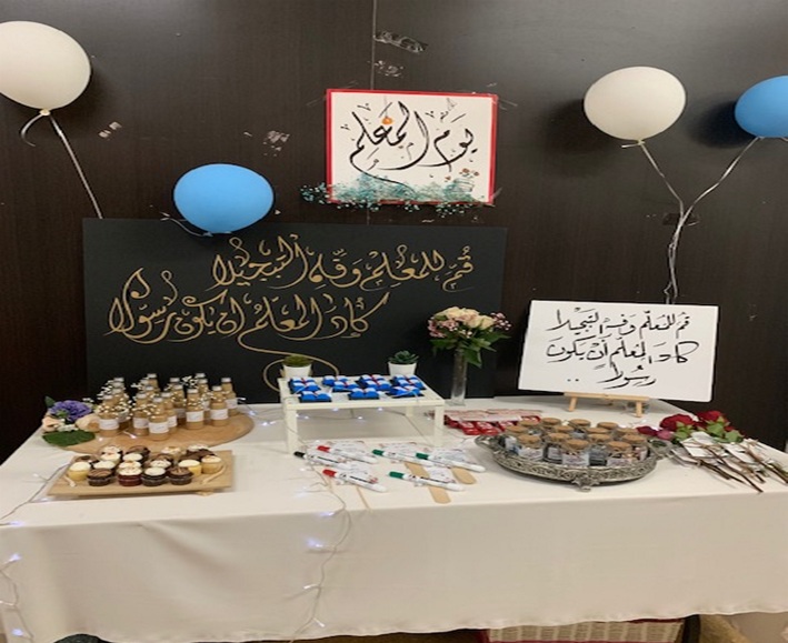 نظمت طالبات المستوى الثانى تحت إشراف الأستاذة سامية الجهني والأستاذة ياسمين يونس فعالية بعنوان "يوم المعلم"، وذلك بتاريخ الأحد الموافق 7/2/1441هـ. هدفت الفعالية إلى تعريف الطالبات بدور المعلم في المجتمع، وتكريم المعلم المتمثل فى عضو هيئة التدريس في الكلية لحثه على المزيد من التميز، والتأكيد على سمو رسالته وأهميتها للنهوض بالمجتمع فى مختلف المجالات. يجدر الإشارة إلى أن العالم يحتفل بهذا اليوم بتاريخ 5 إكتوبر فى كل عام.