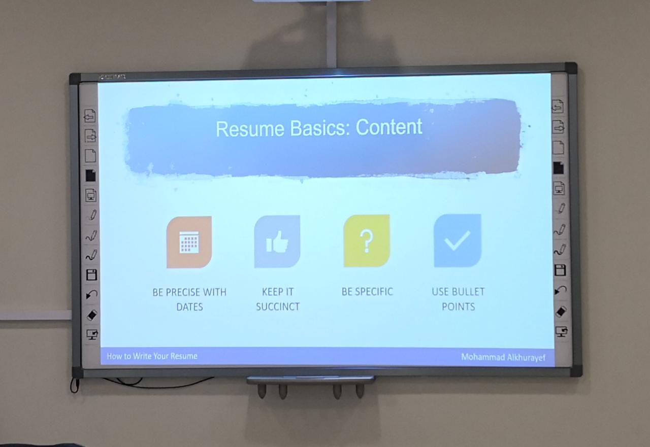 سعياً لتطوير مهارات خريجي كلية إدارة الأعمال في مجال التأهيل الوظيفي، أقامت وحدة الخريجين بالكلية يوم الأحد 2/2/2020م دورة بعنوان "كيف تكتب سيرتك الذاتية" قدمها سعادة الأستاذ محمد الخريف عضو هيئة التدريس بقسم إدارة الموارد البشرية بالكلية.تحدث الخريف خلال هذه الدورة عن أهمية كتابة سيرة ذاتية جذابة لسوق العمل، بالإضافة إلى أهم المهارات اللازمة لكتابة السيرة الذاتية مع الأخذ بالإعتبار أهم العوامل المؤدية لتقليل الإهتمام بالسيرة الذاتية. ثم اختتمت الدورة بإستعراض لبعض النماذج المميزة للسير الذاتية وبعد ذلك تم فتح المجال لإستقبال الأسئلة من الحضور والإجابة عليها من قبل مقدم الدورة.وتؤكد وحدة الخريجين ممثلة بقسم التأهيل الوظيفي على أهمية حضور دوراتها الخاصة بالتأهيل الوظيفي من قبل جميع طلاب الكلية الحاليين والخريجين وذلك لتزويدهم بالمعلومات والمهارات اللازمة لإقتناص الفرص الوظيفية والتدريبية المطروحة.