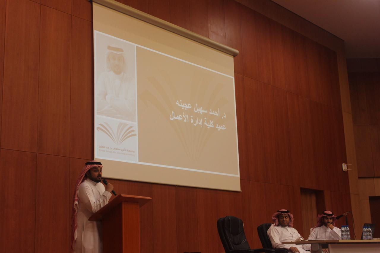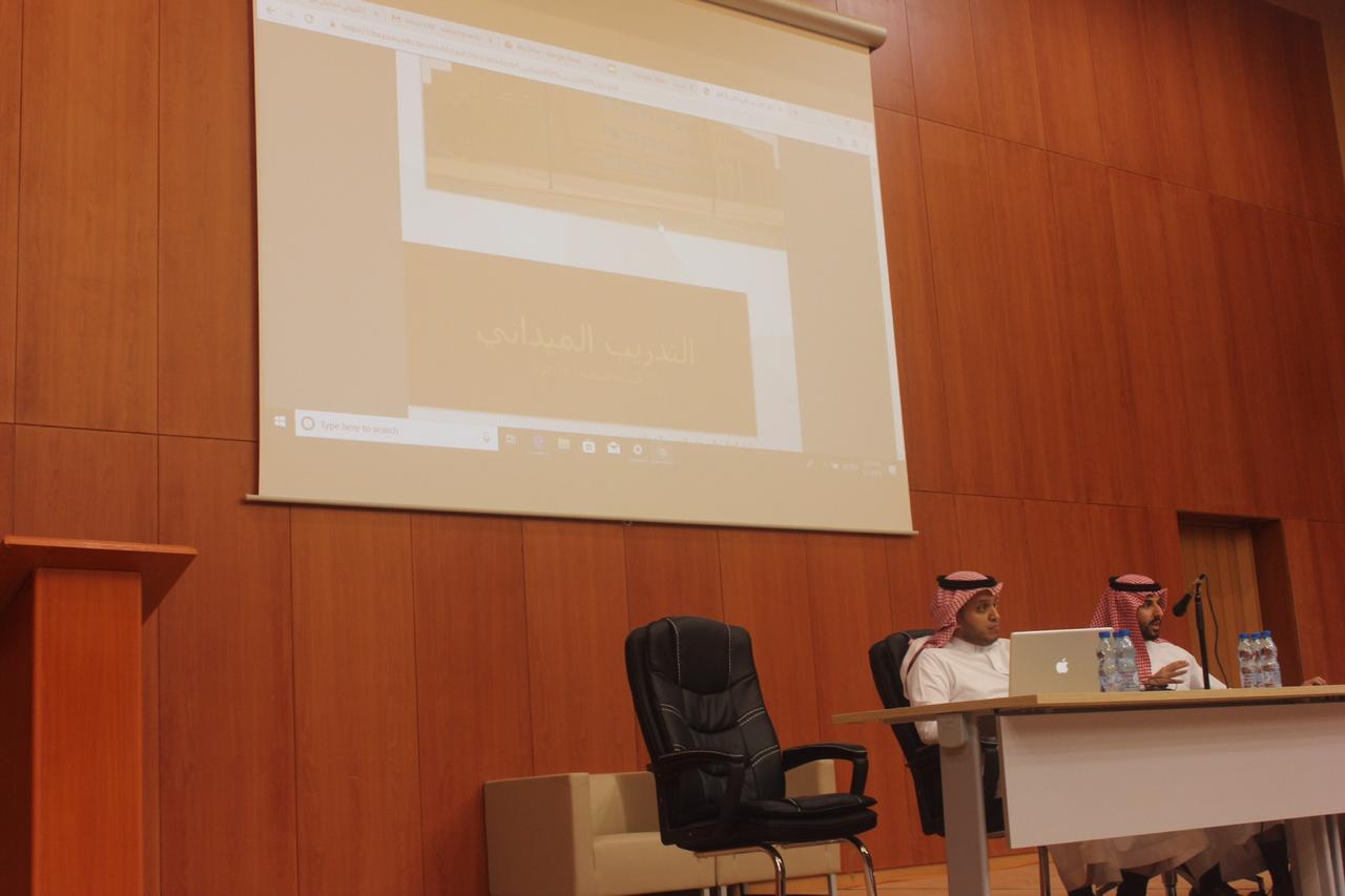 أقامت كلية إدارة الأعمال ممثلة بوحدة التدريب الميداني لقاء التوجيه النهائي يوم الاربعاء 1/5/2019م لطلاب التدريب الميداني الذين سيتدربون خلال الفصل الصيفي لهذا العام. وقد بداء اللقاء بكلمة ترحبية ألقاها الطالب سعد التويجري ورحب فيها بسعادة عميد الكلية د. أحمد بن سهيل عجينه وسعادة وكيل الكلية للشؤون التعليمة والأكاديمية د. عواد الوثيري وسعادة أعضاء هيئة التدريس ومنسوبي الكلية وطلابها والحضور, ثم ألقى سعادة عميد الكلية كلمته والتي ذكر فيها أهمية التدريب للطلاب ولجهات التدريب, حيث أوضح أن التدريب الميداني هو فرصة للطالب لممارسة وتطبيق ما تعلمه خلال دراسته في الجامعة وقد قدم سعادته مجموعة من النصائح القيمة التي ستساعد الطالب عند ممارسته للتدريب الميداني. بعد ذلك بداء رئيس وحدة التدريب الميداني بالكلية أ. سليمان الفوزان الحديث عن آلية التدريب وعن الإجراءات المستقبلية التي سيقوم بها طلاب التدريب الميداني. كما تقدم رئيس وحدة التدريب بالشكر لعمادة الكلية وأعضاء وحدة التدريب وهم أ. وليد المطوع و د.عبدالباسط و أ. اياد أبوذيب و أ. نايف الدويس و أ.صالح الغامدي و أ. تميم المقبل. وفي نهاية اللقاء تم الإجابة عن أسئلة الطلاب واستفساراتهم.