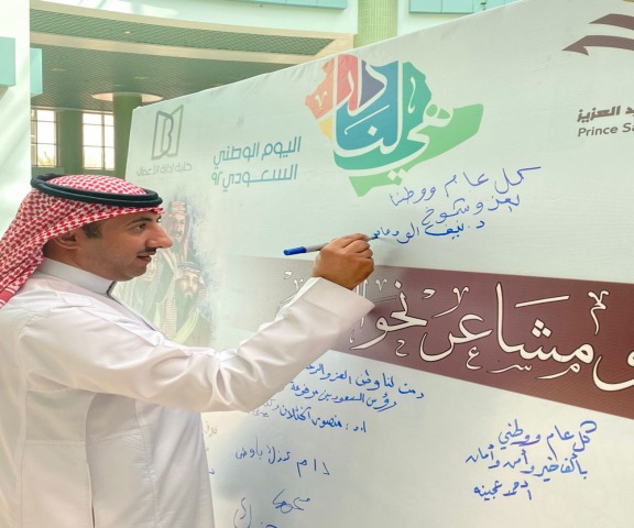 During this occasion, every staff and student expressed his/her sincere feelings of love at the 92nd National Day of the Kingdom of Saudi Arabia, wishing for the continuation of the efforts to achieve the goals of 2030 Vision in the near future.